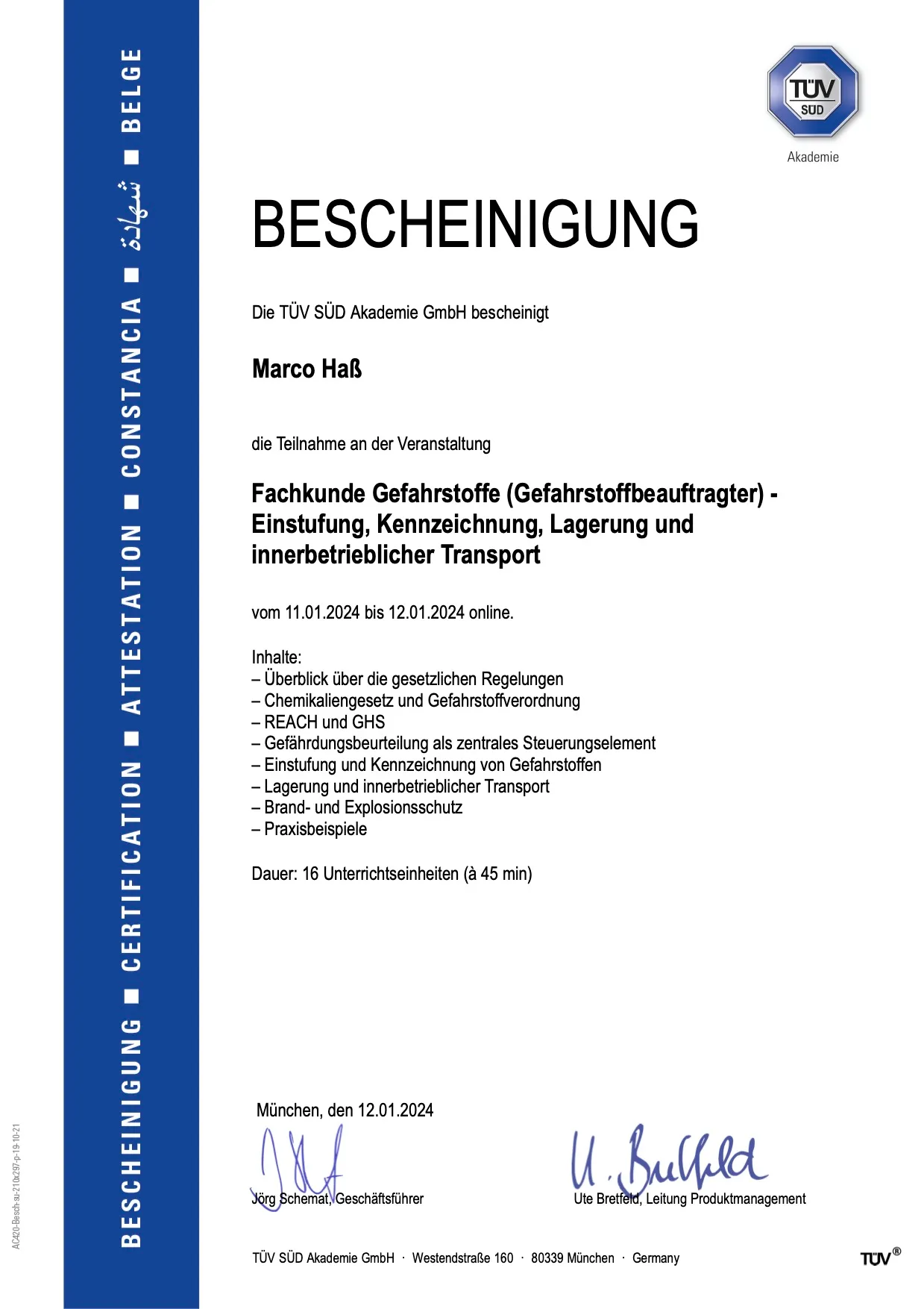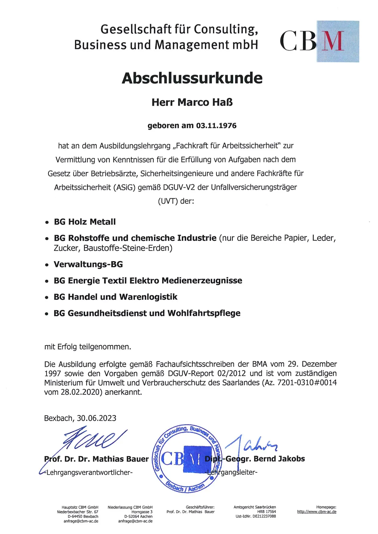 Fachkraft für Arbeitssicherheit BG Holz Metall BG Rohstoffe und chemische Industrie BG Energie Textil Elektro Medienzeugnisse BG Handel und Warenlogistik BG Gesundheitsdienst und Wohlfahrtspflege