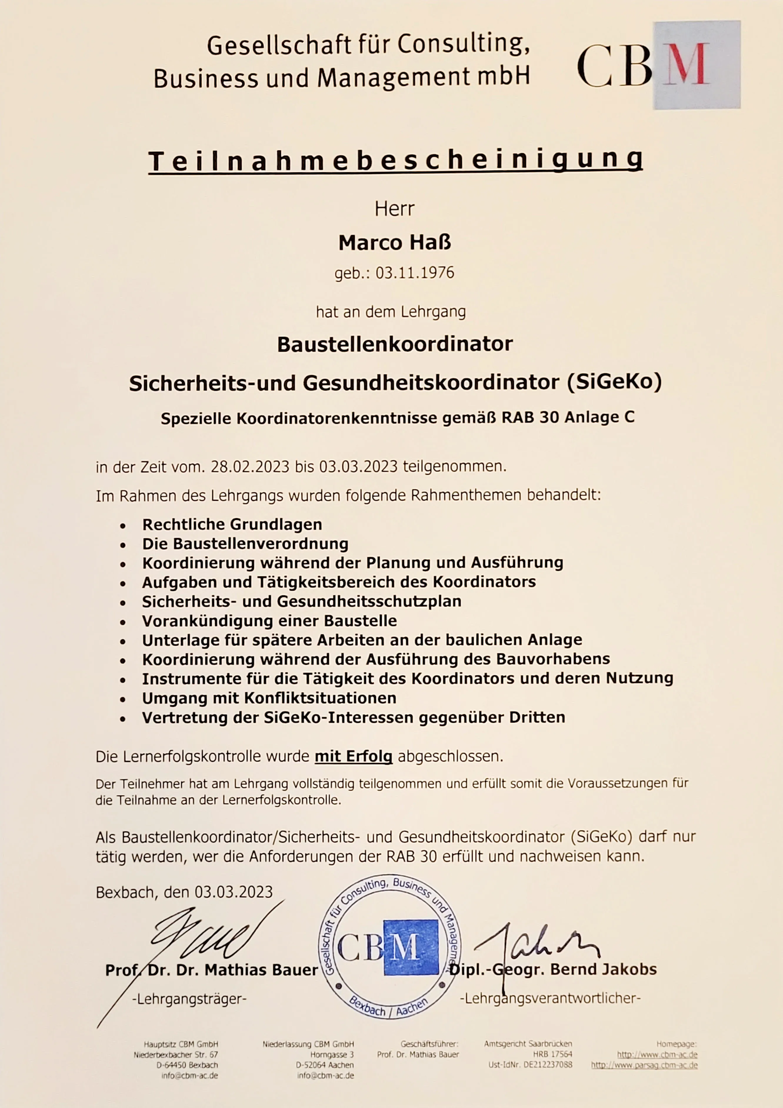 Sicherheits- und Gesundheitsschutz Koordinator (SiGeKo)
