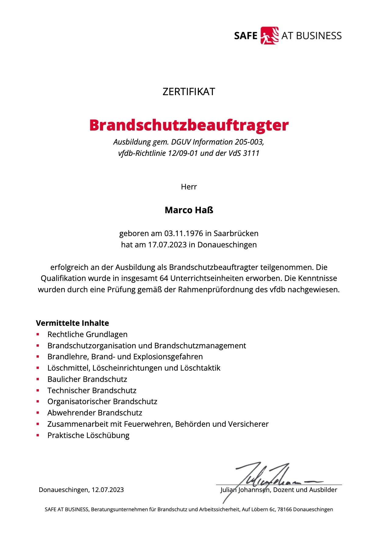 Brandschutzbeauftragter